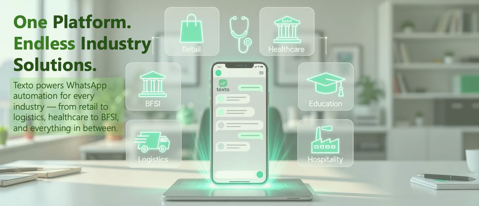 Texto's versatile messaging platform empowers businesses across multiple sectors to transform their customer communication strategies. Our comprehensive WhatsApp Business API solutions are meticulously designed to address the unique challenges and requirements of various industries, from e-commerce giants to healthcare providers.